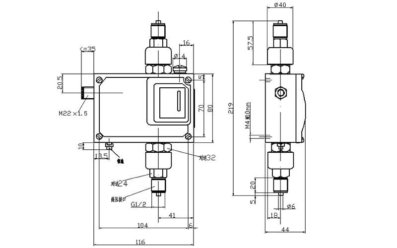530/7DD差壓開關外形尺寸及安裝尺寸(單位:mm)