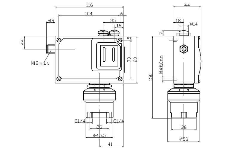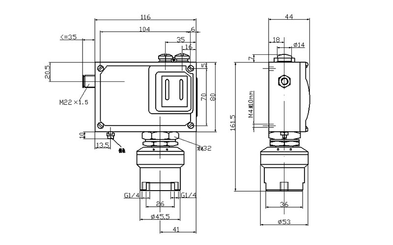 520/7DD防爆差壓開關(guān)外形尺寸及安裝尺寸(單位:mm)
