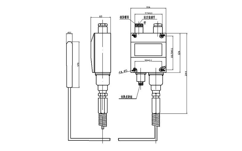 欲控制溫度不超過某一給定壓力值(即上切換值)時(shí),指針應(yīng)調(diào)整在比此給定值低一個(gè)切換差值(即下切換值)的位置上,調(diào)整完畢后,不準(zhǔn)再旋動切換差旋鈕;
