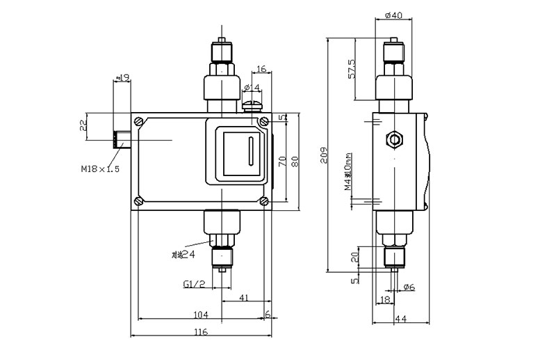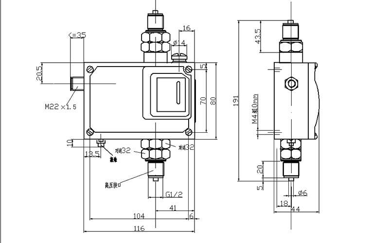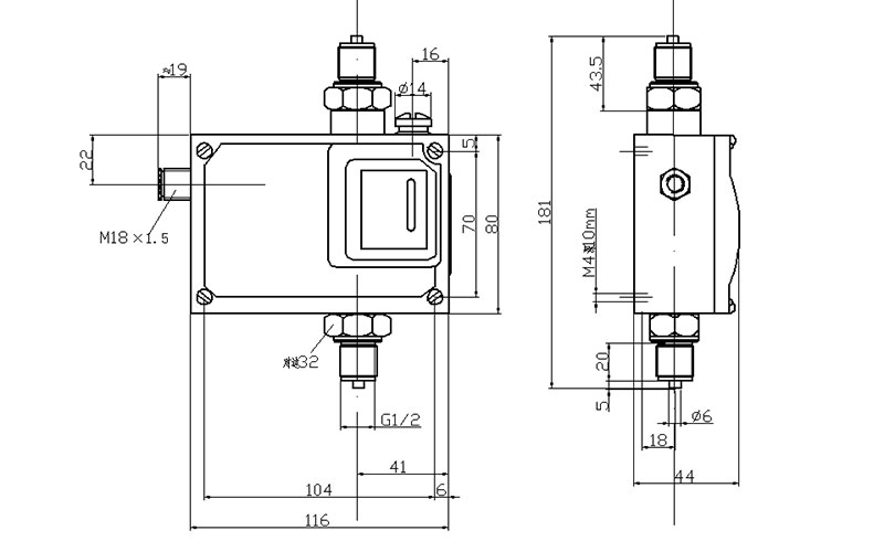 530/7DD防爆差壓開關(guān)外形尺寸及安裝尺寸(單位:mm)