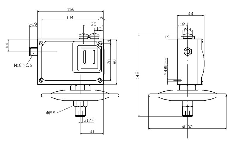 500/7D防爆壓力開(kāi)關(guān)外形及安裝尺寸(單位:mm)