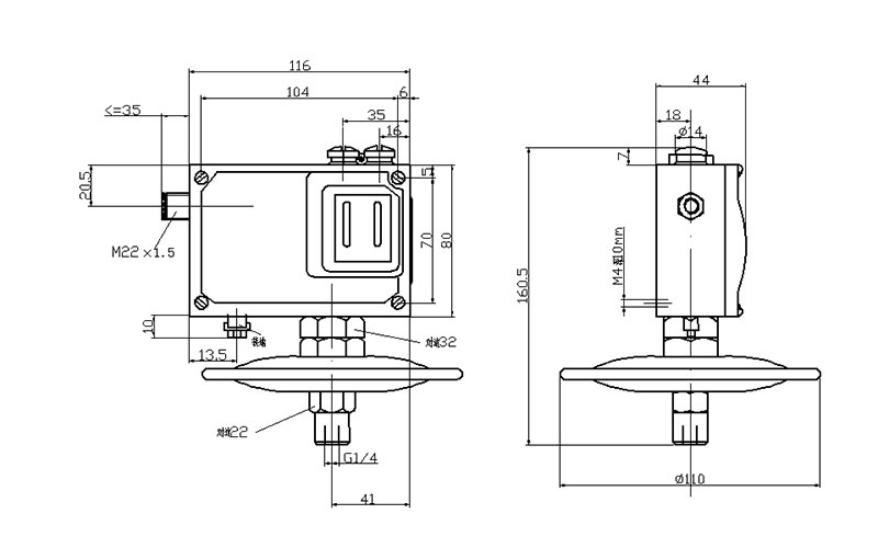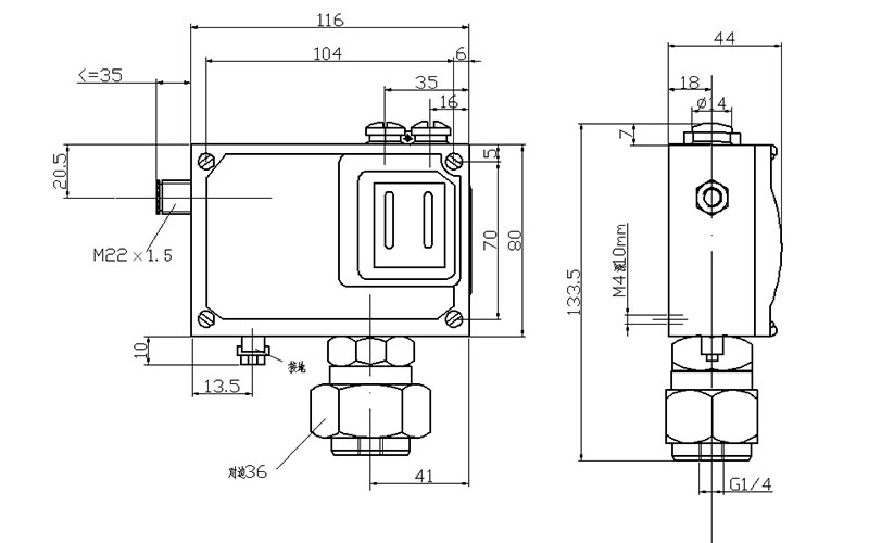 501/7D防爆壓力開關(guān)外形尺寸及安裝尺寸(單位:mm)