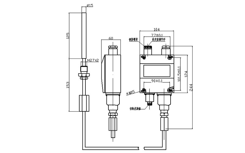 欲控制溫度不超過某一給定壓力值(即上切換值)時(shí),指針應(yīng)調(diào)整在比此給定值低一個(gè)切換差值(即下切換值)的位置上,調(diào)整完畢后,不準(zhǔn)再旋動切換差旋鈕;